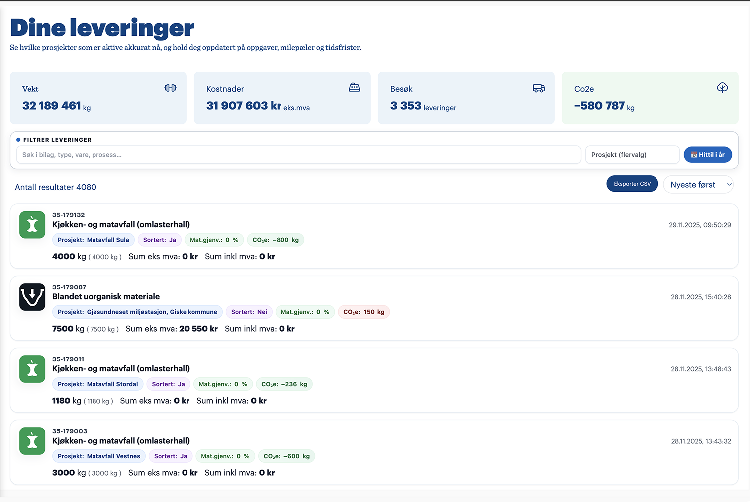 Hold oversikt over avfallsmengden på prosjektene dine.